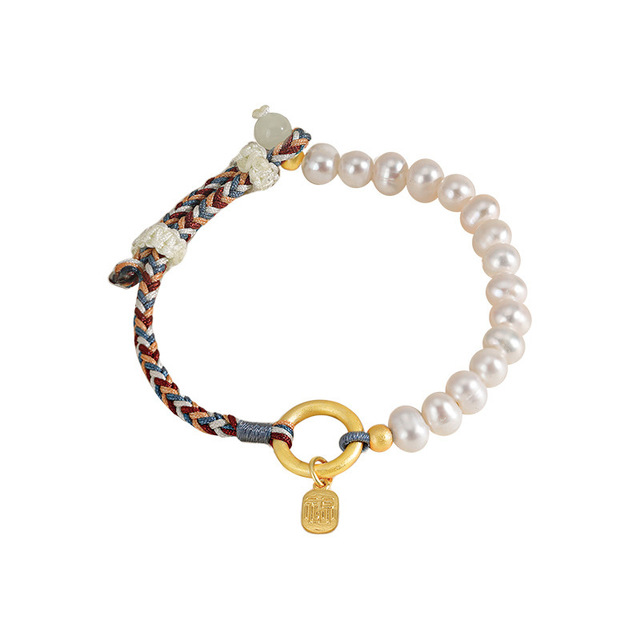 Pulseira Kisvi S925 de prata esterlina com fivela segura para mulheres, pulseira de marca de bênçãos, pérolas trançadas em água doce natural